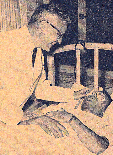 December 11, 1955Carl Oscar Pearson, 67, of Moline, passes away and his eyes are donated to Iowa Lions Eye Bank. This is the first donation in Iowa Lions Eye Bank history. The eyes are transported by Highway Patrolman Richard Reddick to University Hospital, where they are accepted by Dr. C.C. Morledge of the ophthalmology department. The next morning, Dec. 12, Dr. Braley transplants Pearson’s corneas into the eyes of Dr. Robert P. Woods, a neurosurgeon from Topeka, Kansas. This is the first transplant ever done using tissue from Iowa Lions Eye Bank.